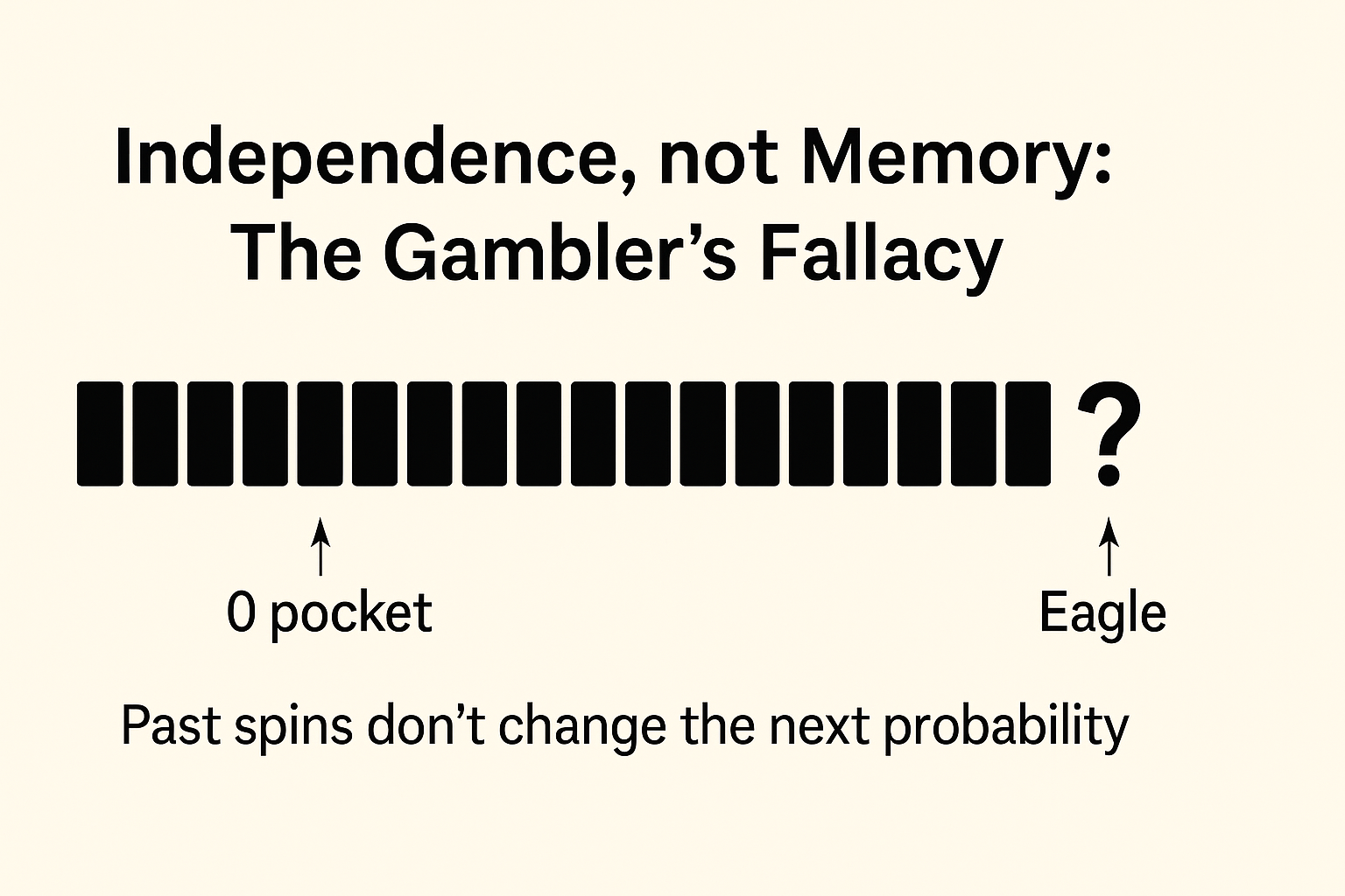 In 1913, a roulette wheel in Monte Carlo landed on black 26 times in a row. Gamblers assumed red was “due” and lost heavily, illustrating the gambler’s fallacy—the false belief that past outcomes influence future independent events.
